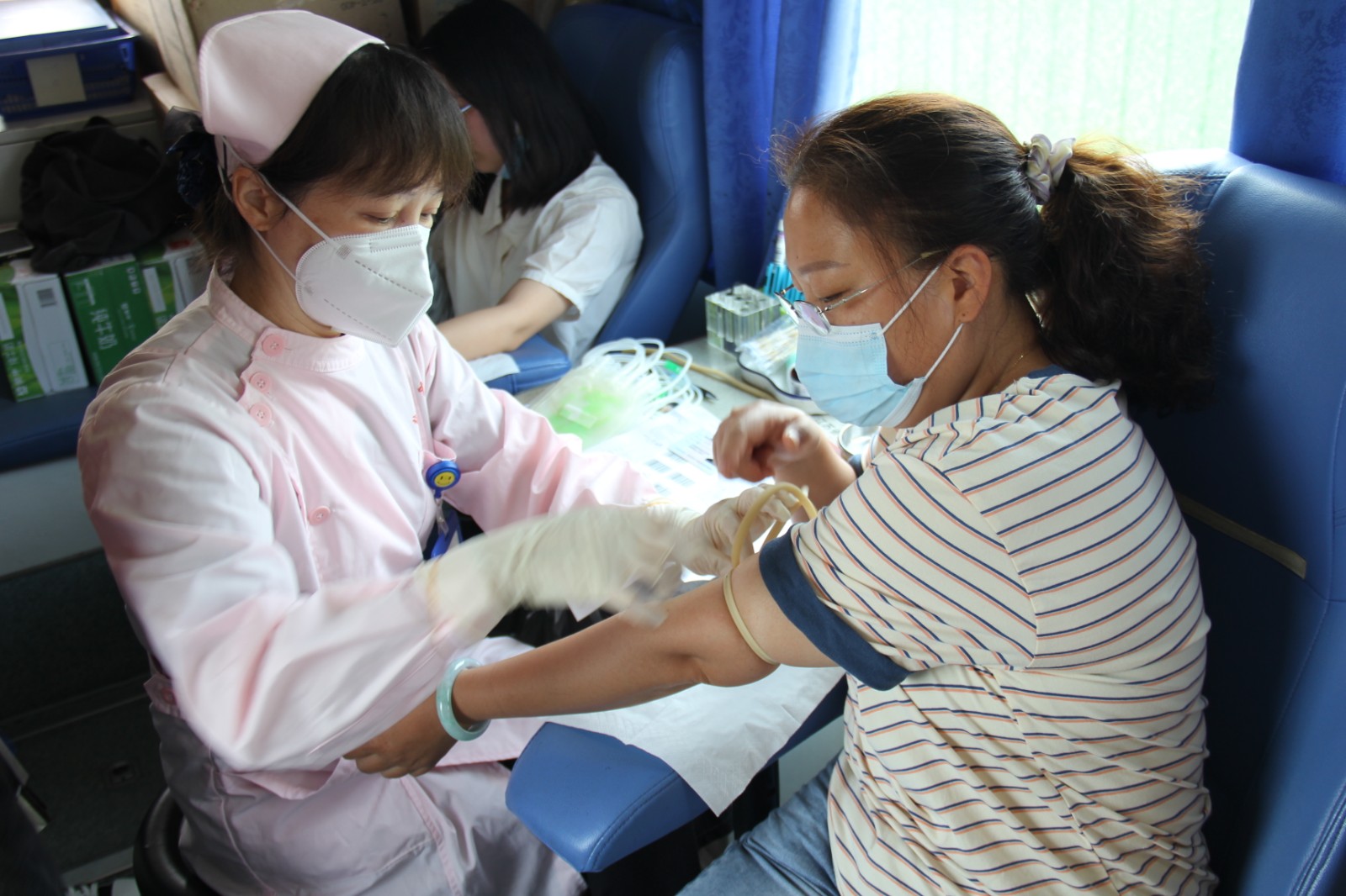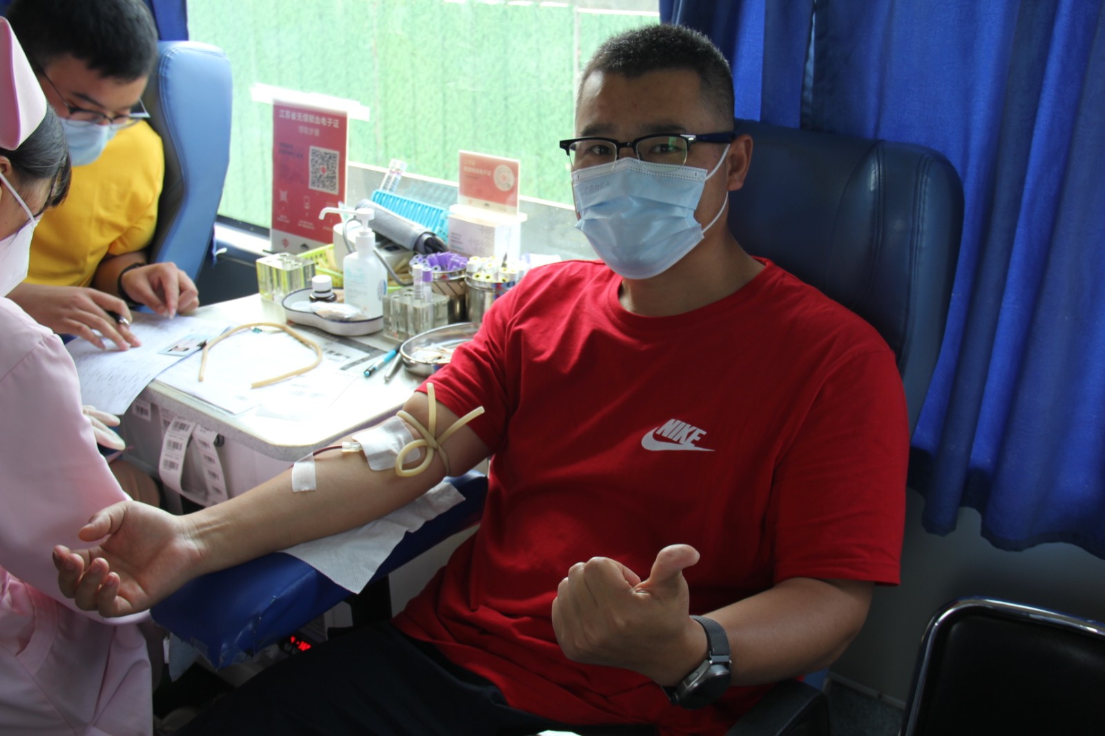 献血车上,有一对夫妻吸引了我们的视线,他们是赵奎景和李纯芳夫妇。夫妻俩早上准备去采血点献血,听闻献血车开进了企业,就特地赶到弗迪公司献血。据了解,他们热心公益事业,曾多次参与献血。赵先生的献血量已达1000毫升。夫妻俩献血后又参与了造血干细胞血样采集,用实际行动为公益事业贡献了力量。