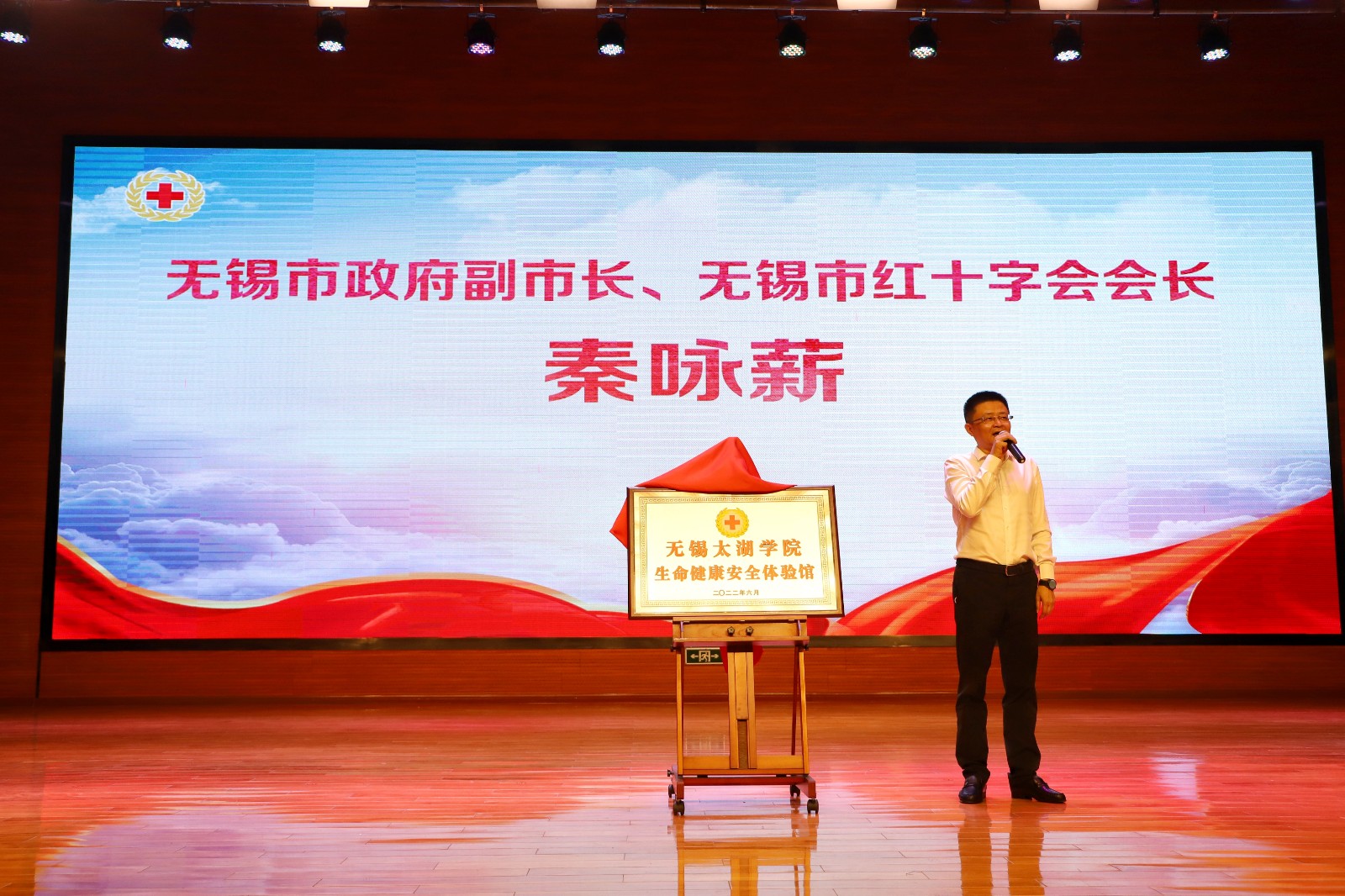 市政府副市长、市红十字会会长秦咏薪宣布项目启动并为无锡太湖学院生命健康体验馆揭牌。