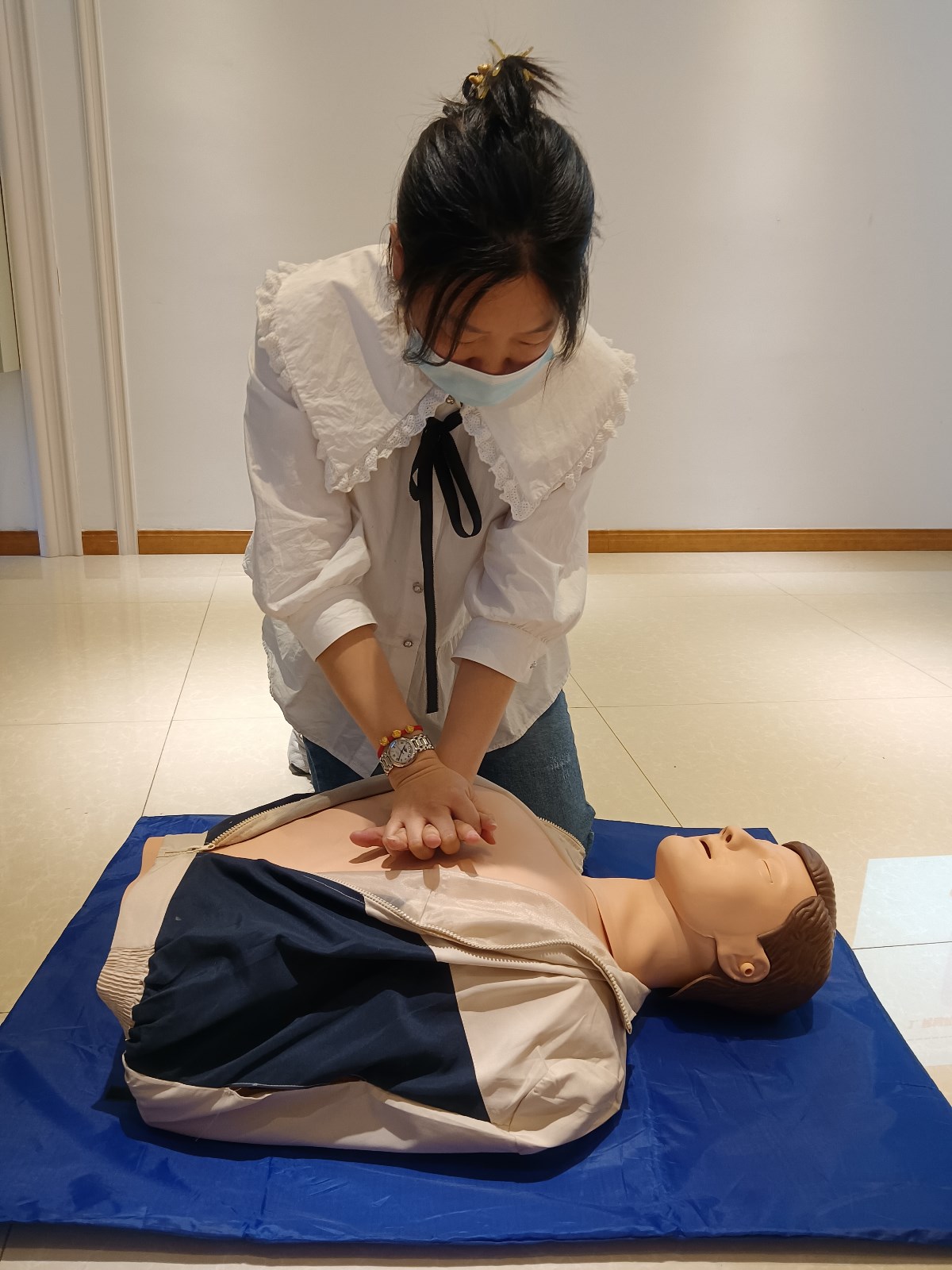 首先,陆燚老师结合幼儿特点着重讲解了常见的异物梗阻、高热惊厥、心肺复苏等救护知识的应急处理方法。并就异物梗阻重点示范介绍了“海姆立克急救法”的注意事项及操作步骤。围绕什么是心肺复苏,心脏骤停的机体变化和临床表现进行理论培训,并示范讲解了心肺复苏技术。培训中,全体教师积极参与,在救护师资指导下完成实践操作。