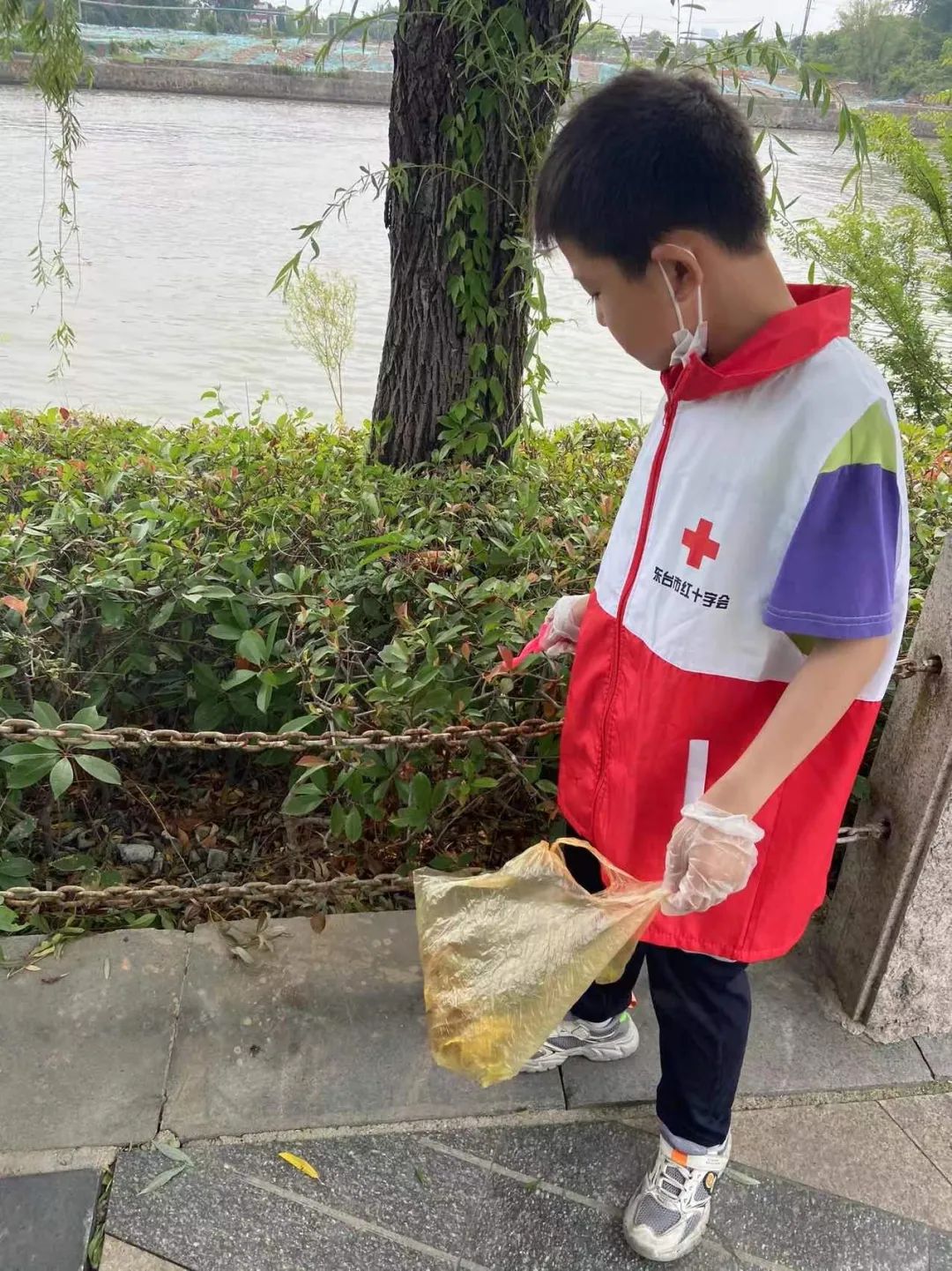 6月16日,东台市红十字会携手团市委,组织红十字青少年在七里漾风光带开展“河小青”净滩行动,这是今年东台“美丽中国,青春行动” 2022年净滩行动第7站。
