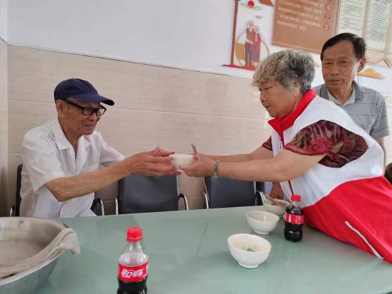 一大早,志愿者们带着新鲜菜肉,来到朱维萍家,洗菜剁馅包馄饨,陪伴她的同时,为她包好了两筛子的夏至馄饨。吃着志愿者喂的馄饨,朱维萍的眼睛红了,她哽咽着说,馄饨好吃,太谢谢你们了。志愿者们还为她体检、检查了家里的水电安全。