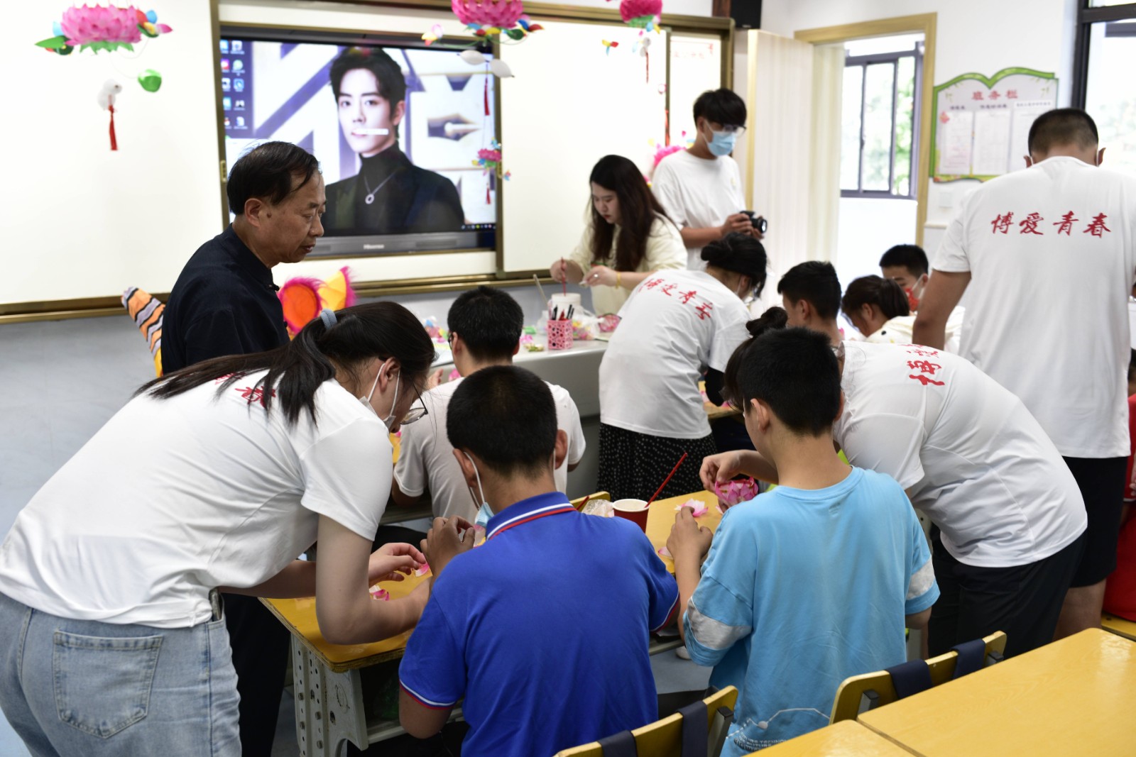 为弘扬“人道、博爱、奉献”的红十字精神,以爱传爱,2022年6月14日,江苏农林职业技术学院“园艺助童,博爱万家”暑期社会实践团走进句容市博爱学校,与“折翼天使”们结对帮扶,开展“展灯彩艺术,传优秀文化”花灯制作活动,感受非遗文化。