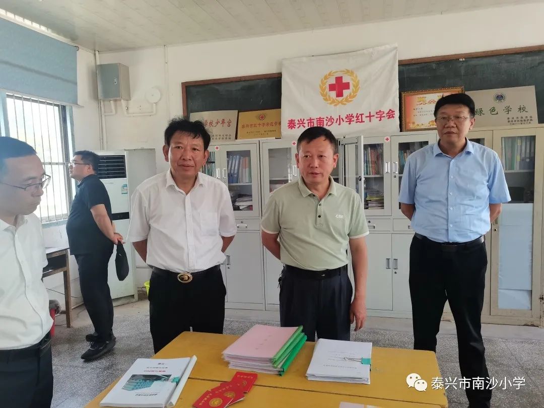 近日,泰州市红十字会党组成员、副会长梅有宏,市红十字会事业发展部部长蒋欣春,泰州市教育局体卫艺处专干张丽丽在泰兴市红十字会、泰兴市教育局、黄桥镇政府相关负责同志的陪同下,到“江苏省红十字示范学校”南沙小学开展实地复查工作。