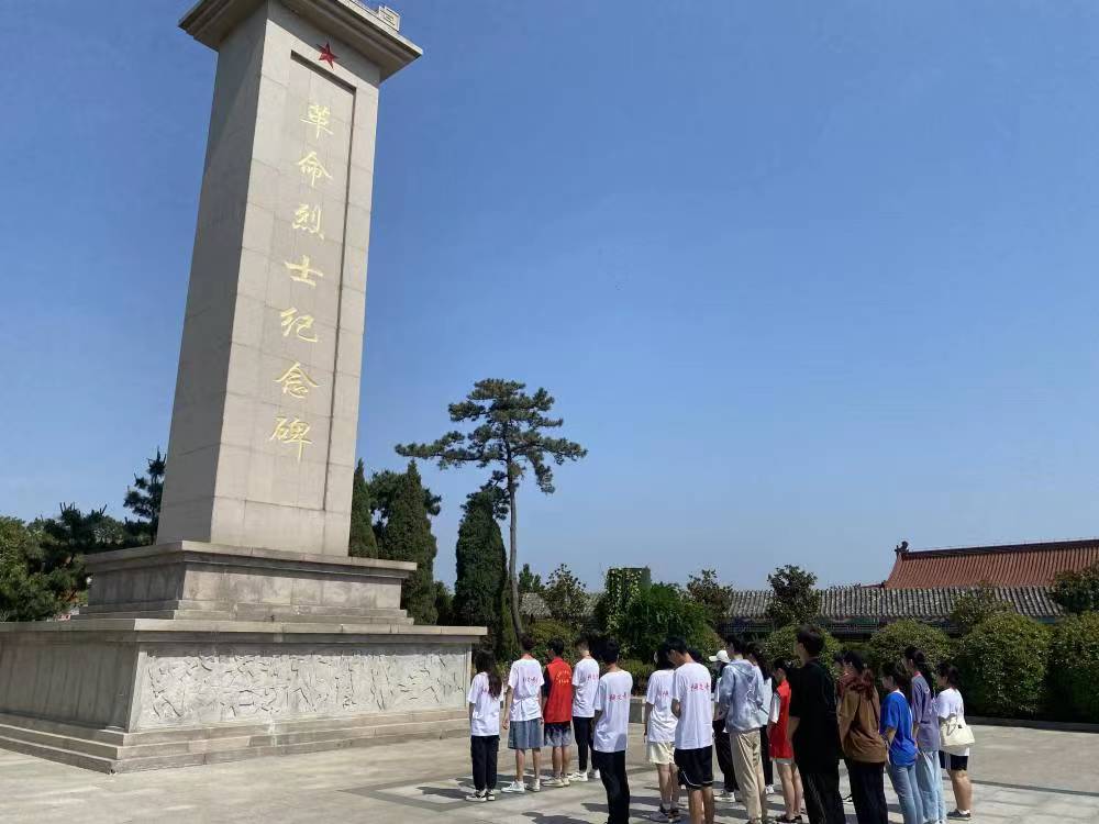 在青龙山公墓,“红鲤鱼”社会实践团队在遗体、器官捐献纪念辈前进行悼念,同时在革命烈士纪念碑前向英雄致敬。