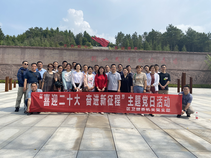 6月21日,“喜迎二十大,奋进新征程”主题党日活动在晶桥铜山战斗纪念广场开展。溧水区红十字会常务副会长刘晓萍带领党员们前往纪念广场及里佳山村红色村落现场参观,在晶桥中心卫生院开展主题党课、阅读分享等,通过现场教学和微党课的形式激励全体党员干部在新时代新征程上奋发有为、建功立业,为党的二十大胜利召开营造浓厚氛围。