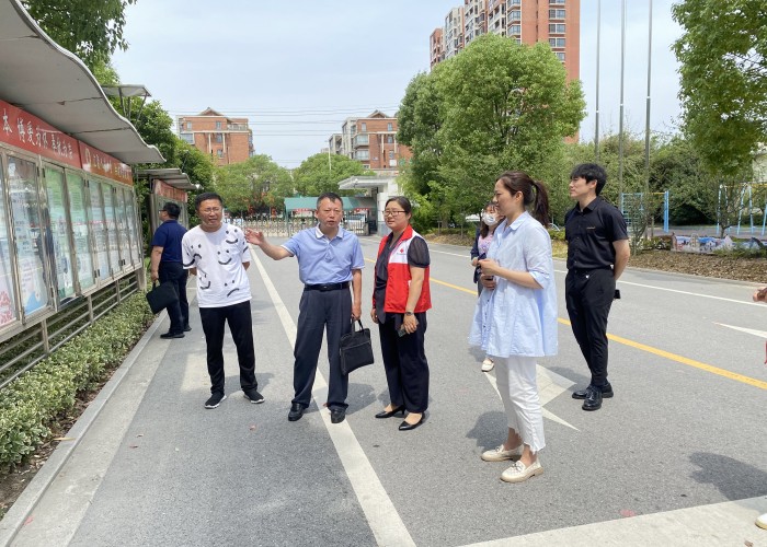 6月24日上午,泰州市红十字会党组成员、副会长梅有宏一行四人到泰州市高港实验小学检查省红十字示范校复查准备情况。高港区红十字会副会长李伟陪同检查。