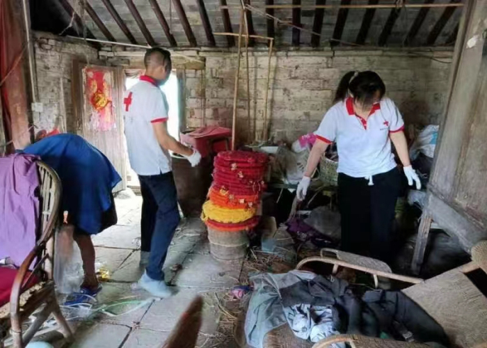 6月18日,高港区红十字养老照护志愿服务队到98岁独居老人胡济孝家中走访,看到凌乱不堪的生活环境,就承诺老人近期来帮助做一次卫生清理。27日上午,6名志愿者带着工具来到老人家中,有的帮助清理杂草,有的帮助搬运杂物,有的帮助修理纱门,老人激动得说:没想到你们真来了,谢谢好心人!看着收拾好的屋子,志愿者露出会心的笑容,纷纷表示要将结对帮扶老人的活动持续开展下去,根据老人的需要,制定服务清单,落实专人负责,陪着老人安度晚年!