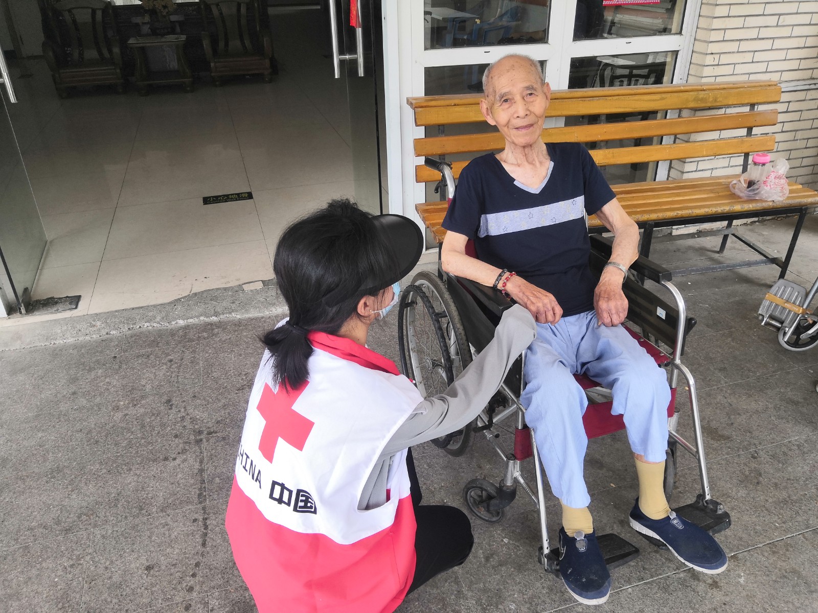 红十字志愿者亲切地和老人唠家常,了解他们的生活状态、健康状态,叮嘱老人要保重身体,科学避蚊虫以及注意防暑。红十字志愿者们还为老人们剪指甲、整理房间等等。在老人眼里,红十字志愿者们就像自己的儿女一样亲切,虽是短暂的陪伴,却让他们倍感温馨。