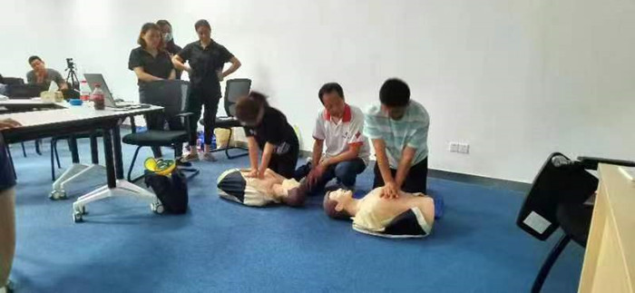 江苏省“五星级应急救护师”徐茂林采用理论和实操相结合方式,让参训员工初步掌握救护新概念、救护基本原则、心肺复苏术、止血、包扎等知识。并阐述了心肺复苏概念、把握“黄金四分钟”实施心肺复苏的及时性和必要性,详细地讲解了评估安全、识别骤停、拨打电话、仰头举颏、开放气道、胸外按压、人工呼吸、复原体位等心肺复苏技术。在实际操作中,徐茂林对员工们在操作中不到位的地方进行指正,让员工熟练掌握操作要领。此次培训,参训员工掌握了现场应急救助自救等知识和技能,有效提高大家应对突发事件和意外伤害的应对处理能力,对平安企业建设起到了积极的促进作用。