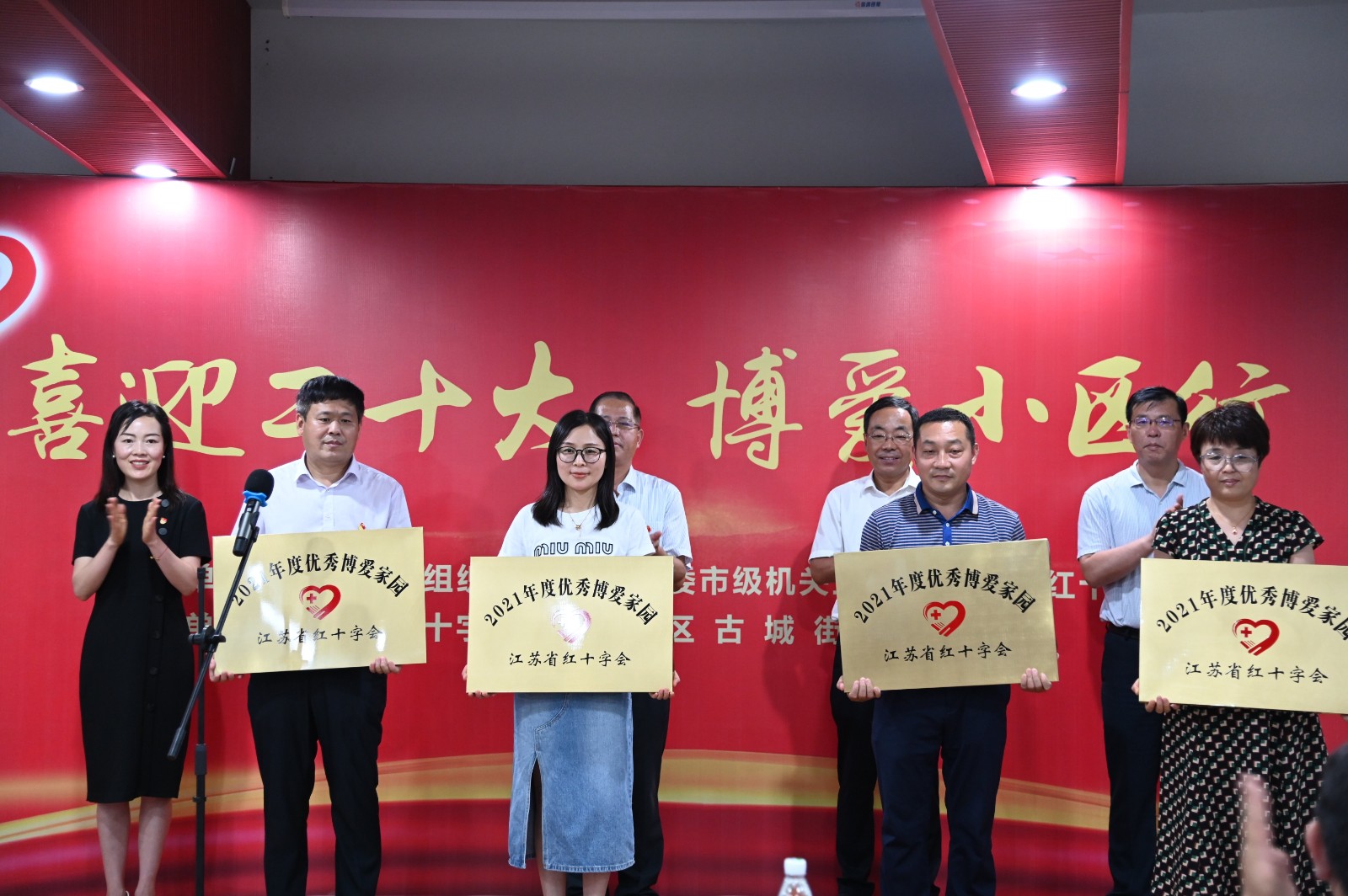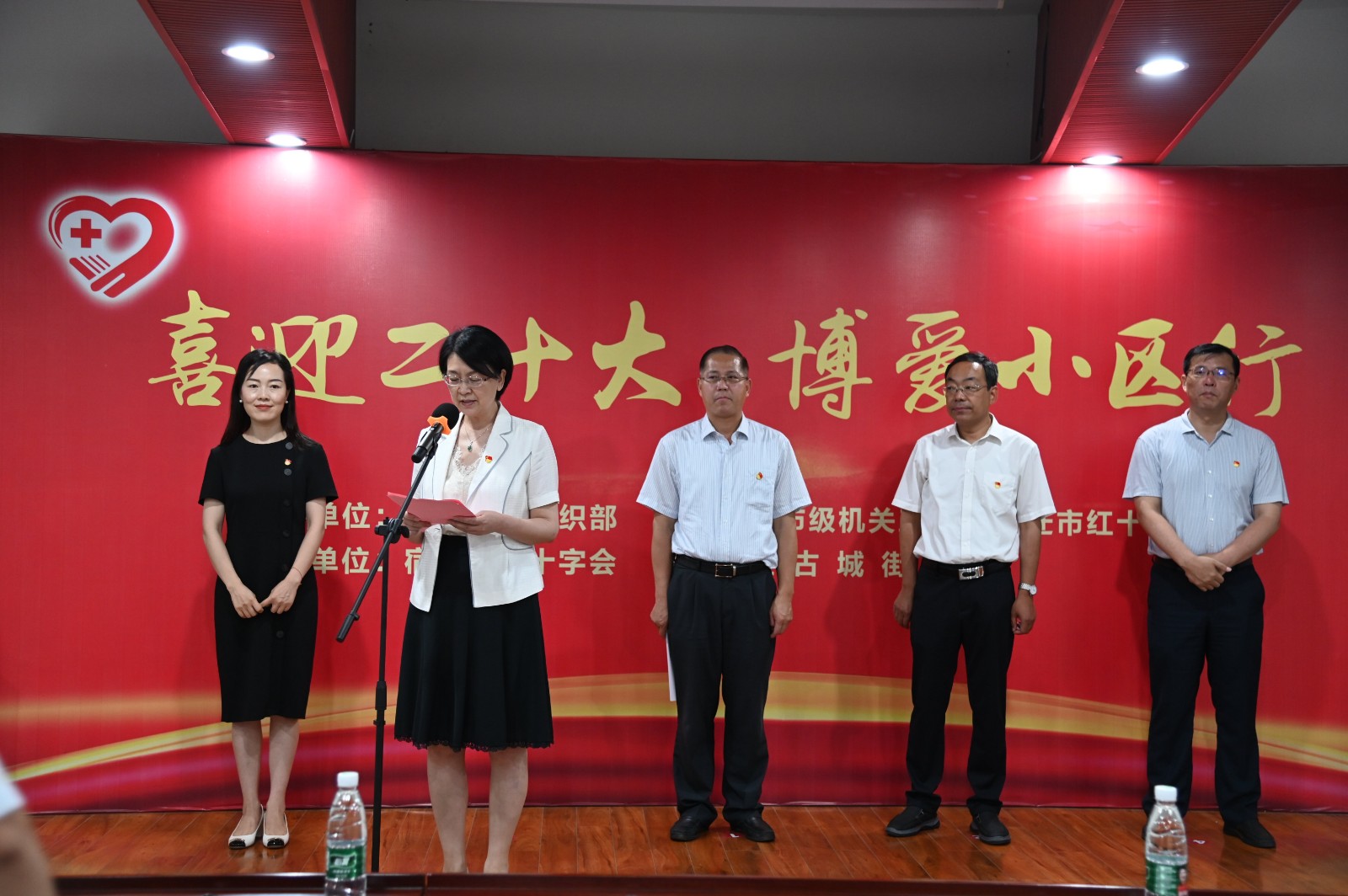 6月28日,宿迁市委组织部、宿迁市委市级机关工委、宿迁市红十字会联合于宿城区古城街道楚苑社区博爱家园举行“喜迎二十大 博爱小区行”活动启动仪式。
