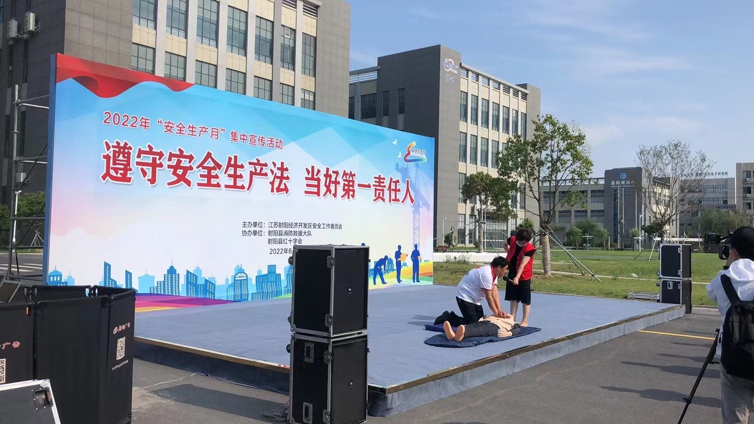 2022年6月25日上午,江苏射阳经济开发区安全工作委员会联合县消防救援大队、县红十字会共同开展了以“遵守安全生产法,当好第一责任人”为主题的“安全生产月”集中宣传咨询日活动。