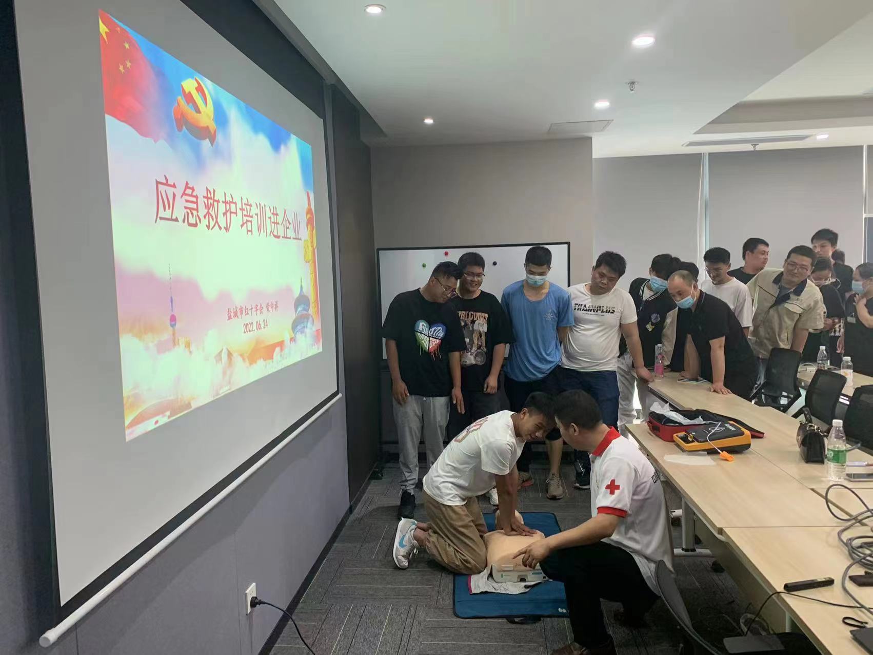6月24日,亭湖区红十字会组织志愿者讲师走进捷威动力工业江苏有限公司,为该公司员工开展应急救护技能培训。