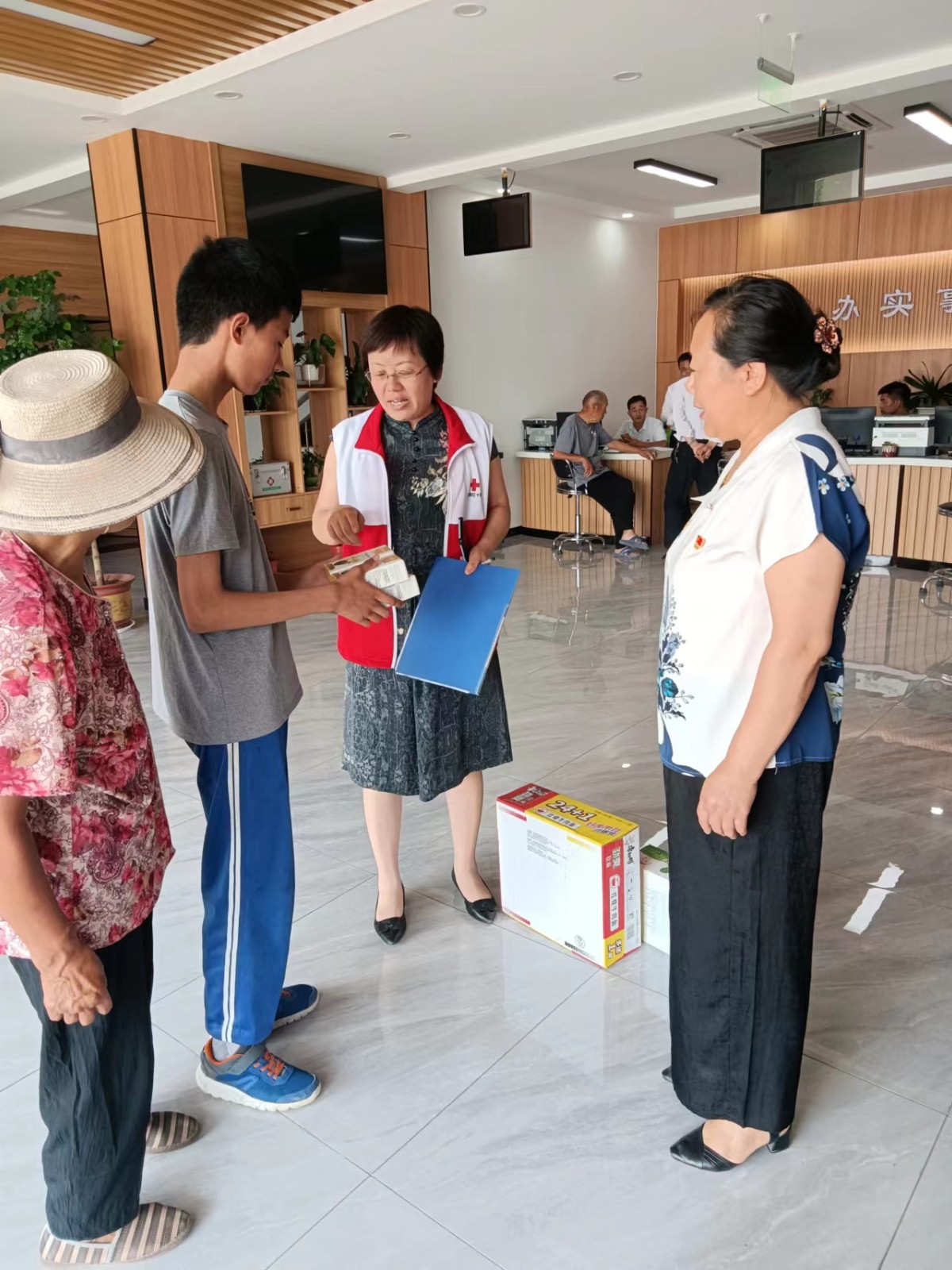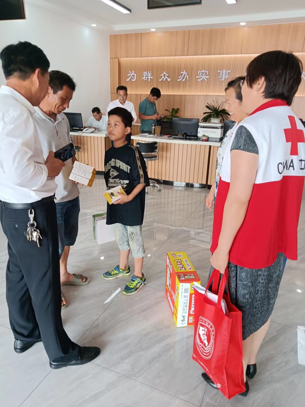 6月28日,县红十字会党支部全体女党员冒着高温来到赵庄镇金刘寨村开展“党员妈妈”送温暖活动。