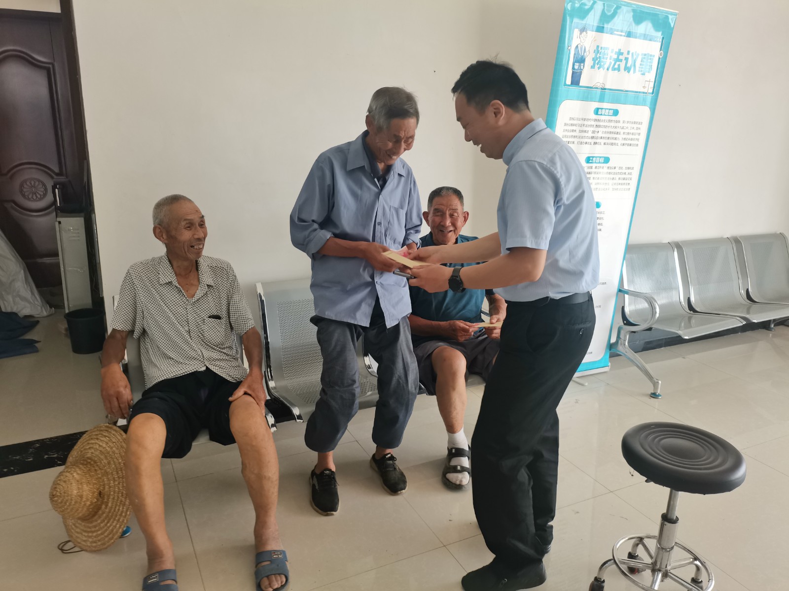 6月28日,驻村第一书记会同村委会干部入户走访慰问了长期卧床的老党员安在君同志及其家属,送去慰问金五百元和一千余元的营养食品,嘱咐家人要悉心照料安在君老人,如需帮助及时向村委会提出,上级党组织是全体党员家庭的坚实依靠。安在君同志家属表示,衷心感谢多年来村委会领导干部们的关心与帮助,感谢党领导下的新时代小康生活给他们家人带来的幸福安康。在大彭庄村党员活动中心,驻村第一书记和村委干部一起又与齐运乾、李昌云和柴连善三名老人座谈,深入了解基层老党员的理想动态和生活需求。向老人们着重介绍了今年下半年将召开的党的二十大是我们党进入全面建设社会主义现代化国家、向第二个百年奋斗目标进军新征程的重要时刻,召开的一次十分重要的代表大会,是党和国家政治生活中的一件大事,举国关注、世界瞩目。参加座谈会的全体人员表示,在新的历史时期要更加紧密地团结在以习近平同志为核心的党中央周围,坚持以习近平新时代中国特色社会主义思想为指导,深刻领悟“两个确立”的决定性意义,胸怀“两个大局”、牢记“国之大者”,增强“四个意识”、坚定“四个自信”、做到“两个维护”,大力弘扬伟大建党精神,不忘初心、牢记使命,高效统筹疫情防控和经济社会发展,统筹发展和安全,坚决扛起新使命、奋力谱写新篇章,以实际行动迎接党的二十大胜利召开。