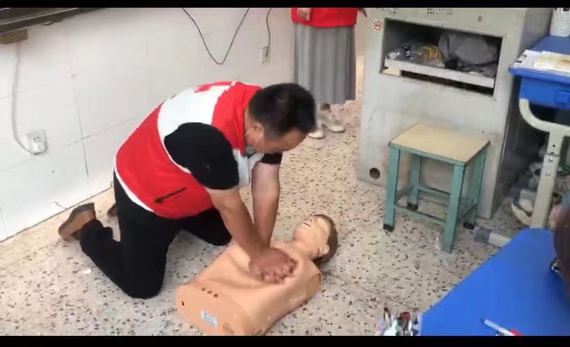 6月29日下午,滨海县红十字会应急救护培训师资刘海峰、高铭为滨海中学高一年级的学生们上了一堂“特殊”的课程——应急救护知识培训课。