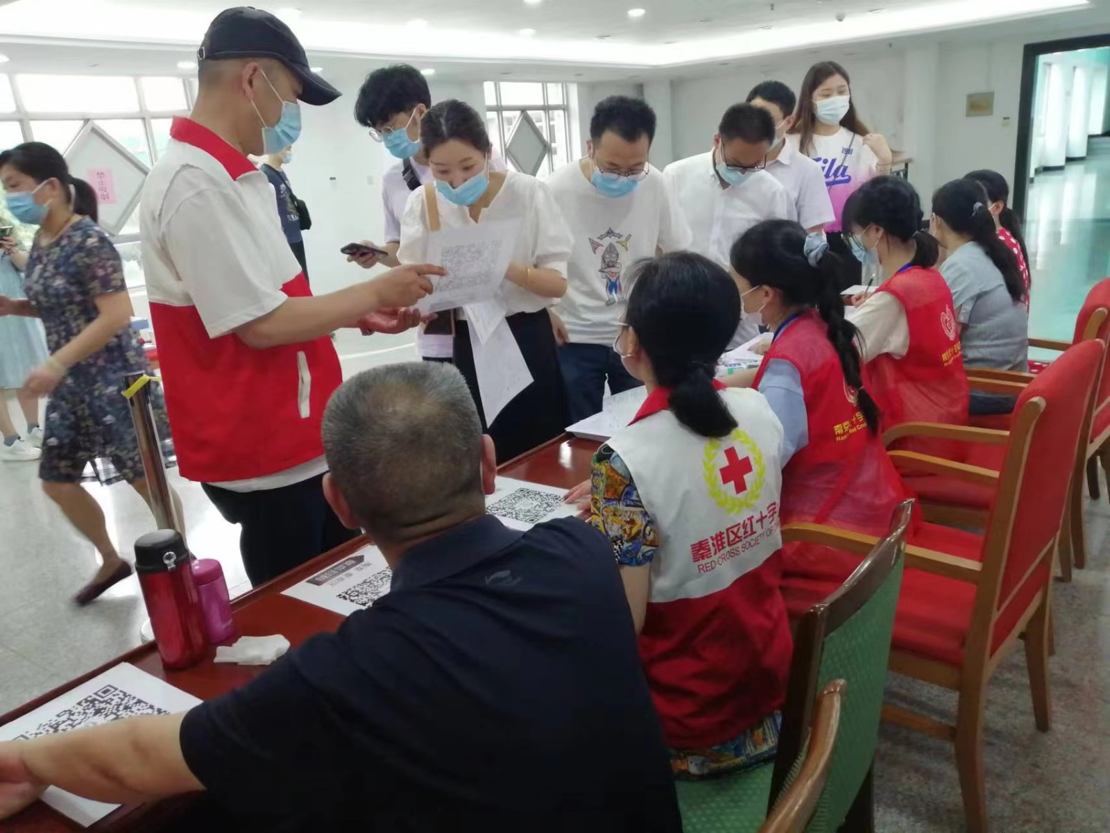 6月28至29日,南京市秦淮区政府献血办公室和区红十字会联合开展“献血是一种团结行为。加入我们,拯救生命!”无偿献血暨造血干细胞捐献宣传动员采样活动。红十字会工作人员带头献血,并向辖区干部群众广泛宣传无偿献血、造血干细胞捐献、遗体和人体器官捐献的重要意义和科普知识。两天中,有870名区机关、街道干群无偿献血224110毫升,有130人参与了造血干细胞的捐献工作,成为中国造血干细胞捐献者资料库中的一员。他们虽然只是抽取几毫升的血液,但却承载了众多血液病患者生命的希望。