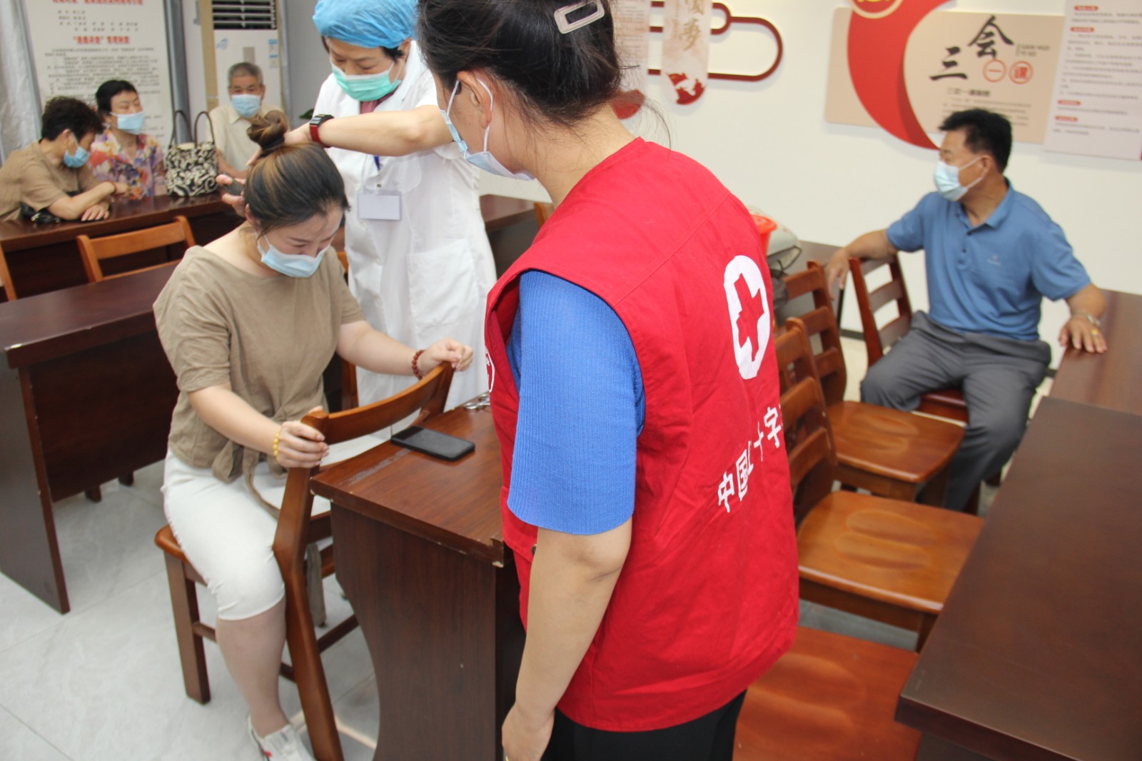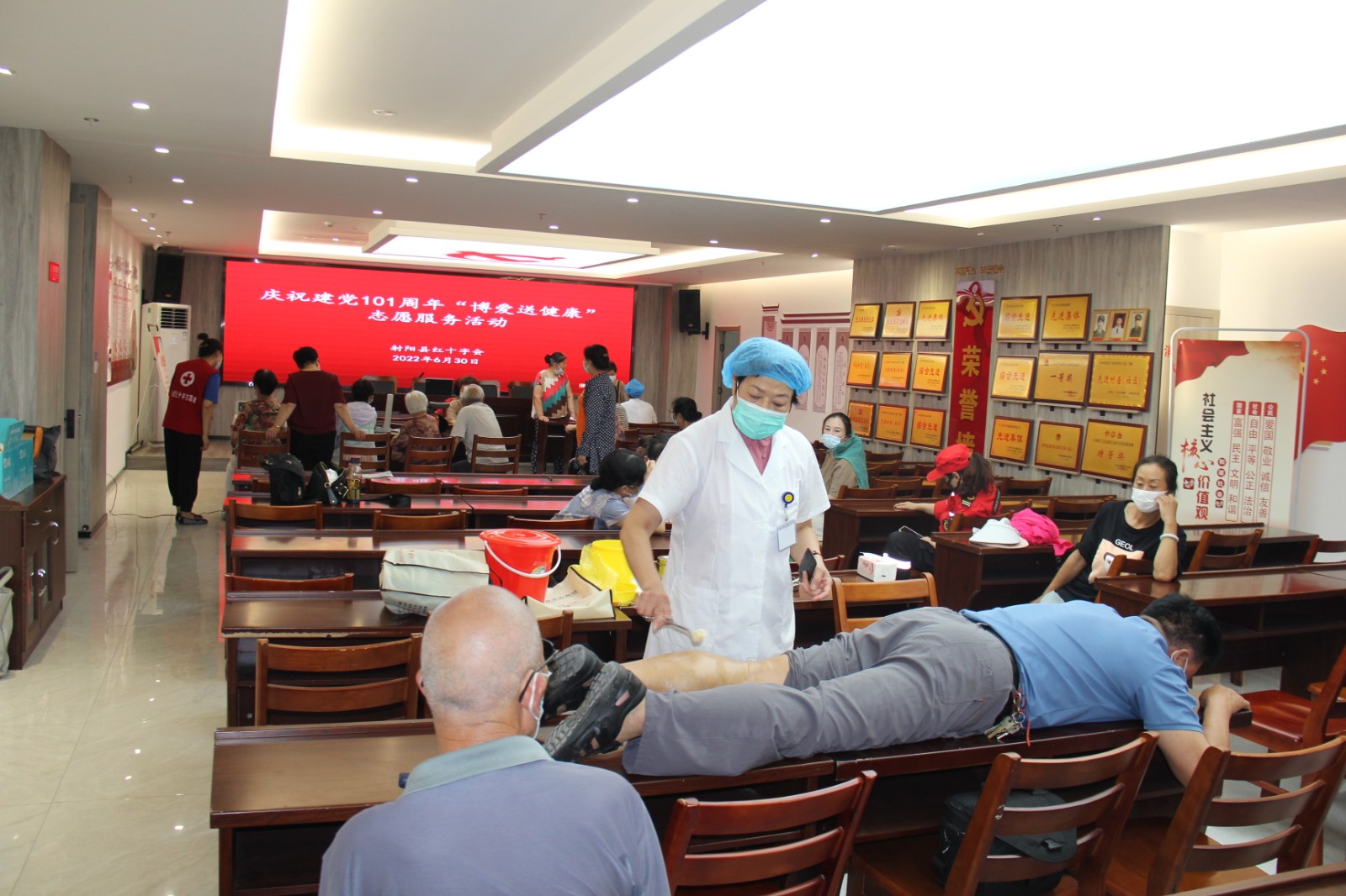 2022年6月30日下午,射阳县红十字会联合红十字冠名医院射阳县中医院在发鸿社区博爱家园开展了“博爱送健康”志愿服务活动。