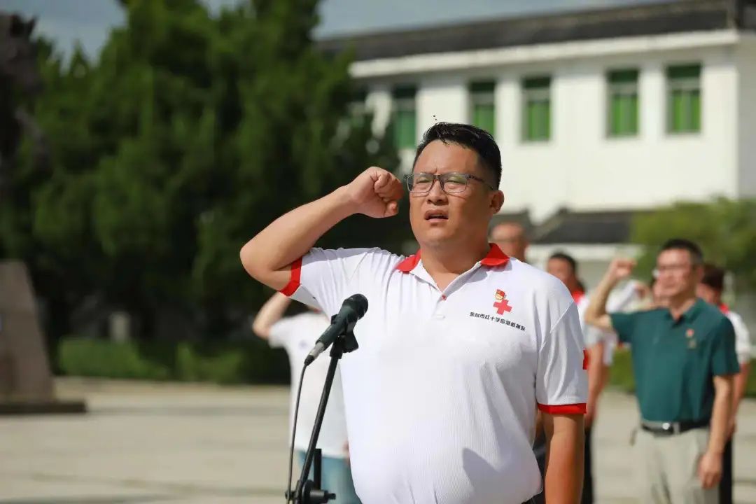 市红会、红十字救援队党员统一佩戴党徽,在领誓人崔凯的带领下,重温入党誓词:我志愿加入中国共产党,拥护党的纲领,遵守党的章程,履行党员义务,执行党的决定,严守党的纪律,保守党的秘密,对党忠诚,积极工作,为共产主义奋斗终身,随时准备为党和人民牺牲一切,永不叛党。随后集体参观了新四军一师纪念馆、初心广场、红军园、东台烈士英名墙、烈士墓区、东台革命烈士纪念馆等,认真观看烈士遗留的文物,瞻仰革命烈士的画像,了解烈士在革命进程中的丰功伟绩和革命精神。经过这次活动的精神洗礼,大家一致觉得要把革命烈士的革命精神传承下去,不忘初心,砥砺前行,积极把对革命先烈的崇高敬意和感恩之心转化为行动,以更加强烈的历史使命感和政治职责感投入到红十字工作中,永葆共产党员先进性。