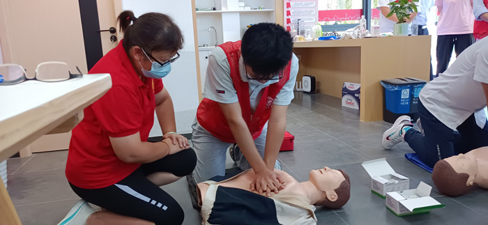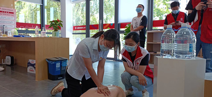 7月1日,溧水区红十字会联合小溧志在秦淮公园志愿者服务之家,为区水务集团的党员们开展救护培训。