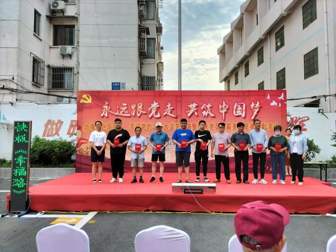 为庆祝中国共产党成立101周年,进一步增强社区党组织的凝聚力,宣传典型,近日,高邮市高邮镇北海社区博爱家园与南海社区博爱家园开展“永远跟党走 共筑中国梦”庆七一喜迎二十大文艺汇演暨“最美志愿者”表彰颁奖活动,以丰富多彩的活动形式,弘扬伟大的建党精神。