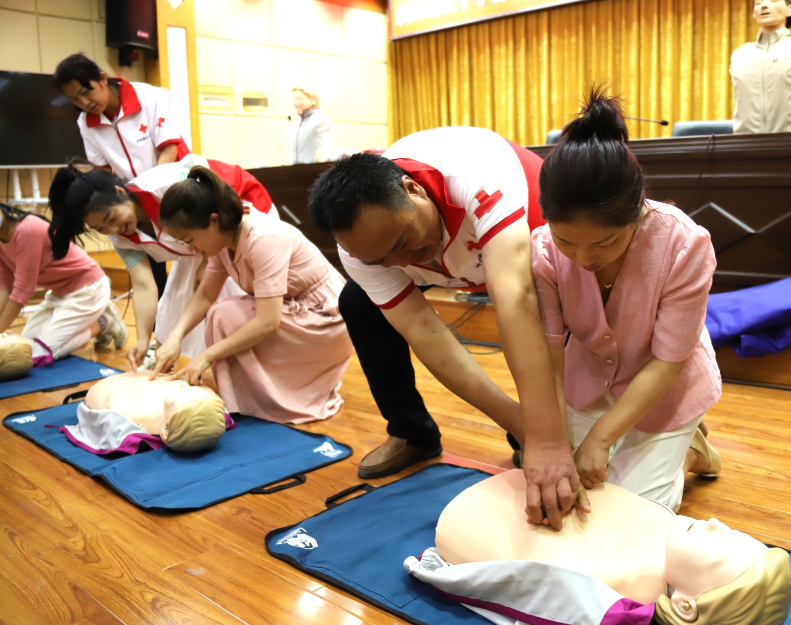 活动现场,县红十字会志愿者用通俗易懂的语言,以场景模拟,互动教学,学员亲身体验等多样化模式,围绕心肺复苏,异物梗阻,止血包扎等内容进行详细讲解,帮助干部职工在遇到突发情况时能够准确,迅速采取有效急救措施,为日常学习生活提供有利健康保障。