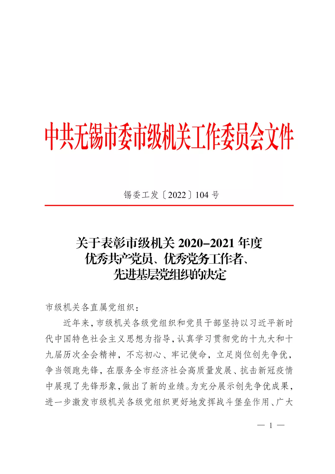 在庆祝中国共产党成立101周年之际,市委市级机关工委公布了无锡市2020-2021年度优秀共产党员、优秀党务工作者、先进基层党组织名单,我会宋扬同志荣获“优秀共产党员”称号。