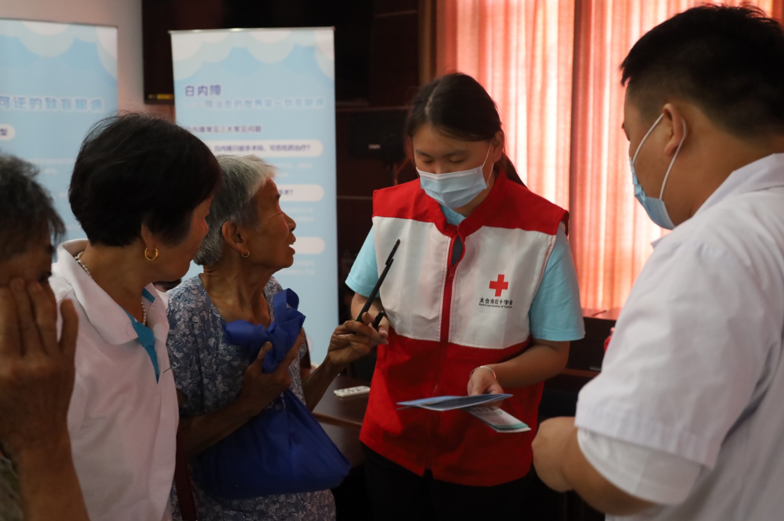 当天活动邀请专业眼科医生为居民提供视力检查、眼底检查、白内障筛查等系列义诊服务。期间,市红十字会、厚生眼科医院、德生社工协调配合,一方面积极向居民分发宣传页,宣传讲解眼部健康知识,告知现场义诊服务内容,保障现场服务有序开展;另一方面配合医务人员,用方言与听力不便的老年人沟通,询问眼部具体情况,详细记录患有眼疾的居民信息,完成人员登记,帮扶有行动障碍的老年人配合检查。共有40多位村民在活动现场得到义诊服务。