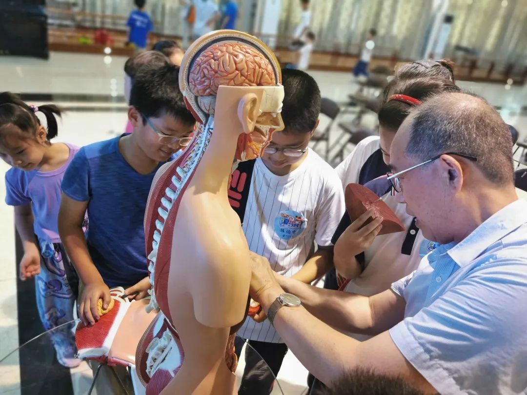 讲课正式开始,第一问便是“生命的起源”,蒋教授由自然引入生命,由生命落到“人本”,借助人体内部结构模型,为小朋友们简明扼要、生动直观地讲解了人体各部位的实际构造和具体功能,还时不时地邀请小朋友参与互动,一起识别人体各个部位名称,帮助小朋友更好的认识自身、了解自身、保护自身。