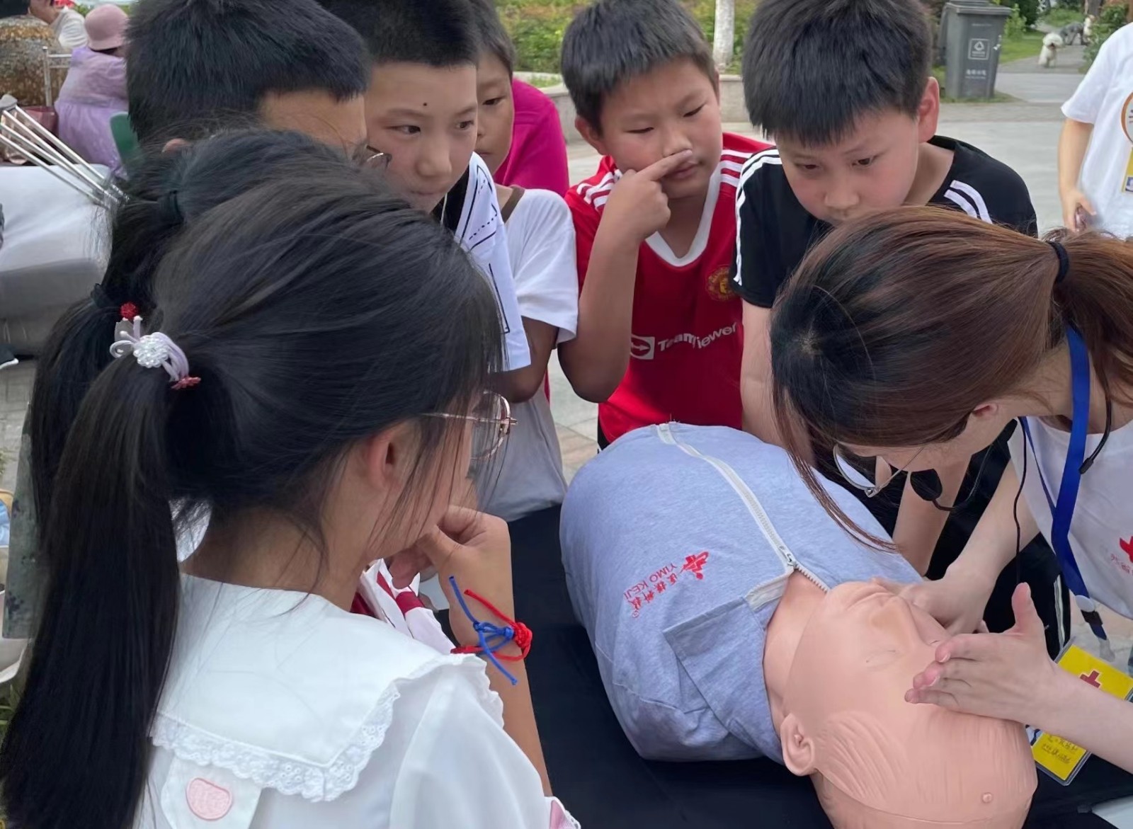 7月3日—4日,镇江高等专科学校卫生护理学院博爱青春红十字志愿者服务队走进润州区宝塔路街道黎明社区开展暑期关爱青少年之“守护生命,为爱前行”急救知识科普主题活动。红十字志愿者在现场给孩子和家长们重点讲解了防触电,防溺水,火灾逃生,地震避险及疏散,创伤救护等应急救护知识,并通过心肺复苏和海氏急救法,演示邀请孩子和家长亲自体验和练习,进一步提升家长和孩子的安全防护意识,让孩子们过一个快乐、安全的暑假。