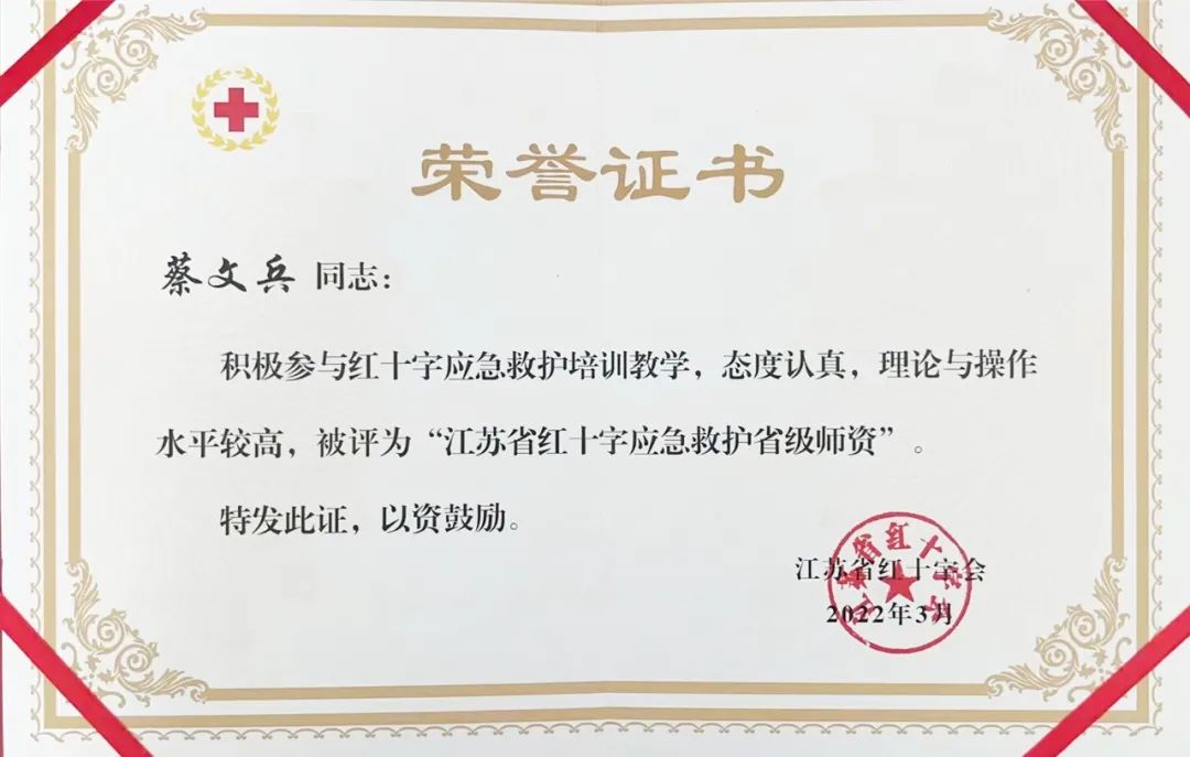 [扬州市]蔡文兵被评为首批“江苏省红十字应急救护省级师资”,扬州首个