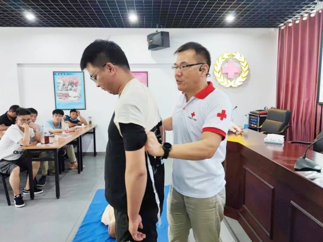 拿到救护培训师证书的那天起,蔡文兵成了仪征市红十字会的义务救护培训师,一开始,蔡文兵协助其他培训师做示范、纠正学员动作,还不敢上台讲课。“这么多年只会看病,跟病人说话,一下子让我走上讲台面对那么多人真有点紧张。”