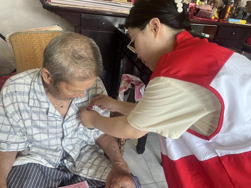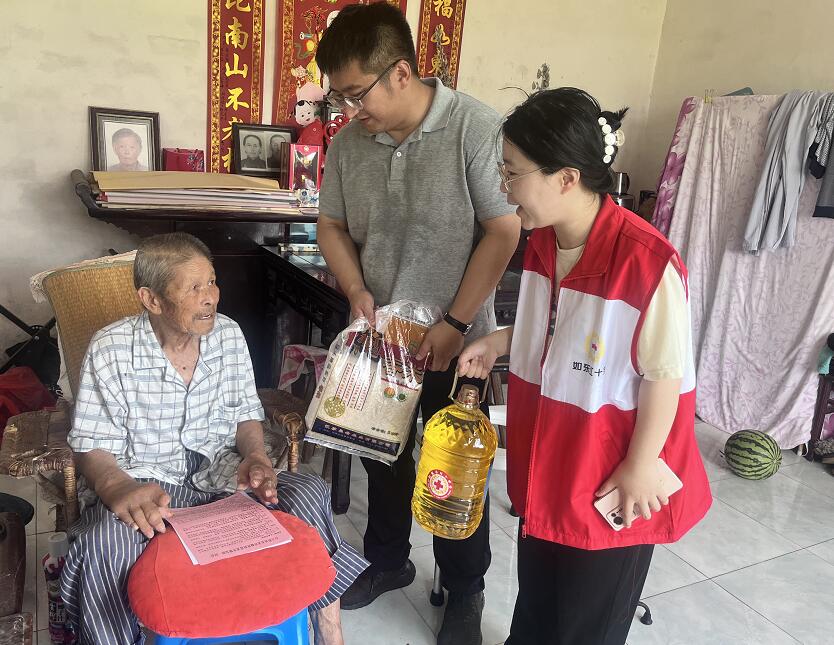 在“七一”建党101年之际,为进一步弘扬“人道、博爱、奉献”的红十字精神,不断发扬我党的优良作风,掘港街道虹桥村红十字博爱家园志愿者们带上大米和食用油上门慰问困难老党员,并为他们戴上党徽,一起重温入党时的故事和情景。现场红十字志愿者们还和老党员一起拉起了“强国复兴有我 庆祝建党节---虹桥村委会‘七一’慰问老党员”的横幅,并关心他们的身体和生活状况,希望他们能一如既往发挥余热,支持村委会的各项工作,为村红十字博爱家园工作添砖加瓦,献计献策!老党员们也一致表态:“强国有我、永不掉队”。
