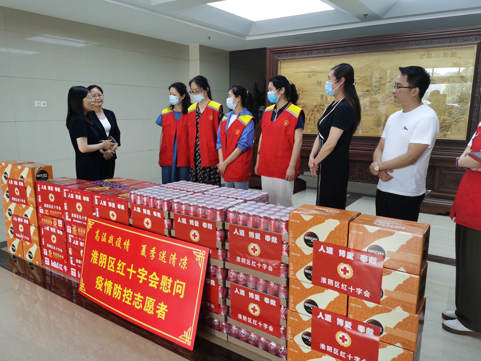 7月8日下午,副区长、红十字会会长胡珍带领区红十字会一行看望慰问了坚守在公安局信息溯源流调工作一线的疫情防控志愿者们,为175位抗疫一线志愿者送上清凉解暑的饮品。