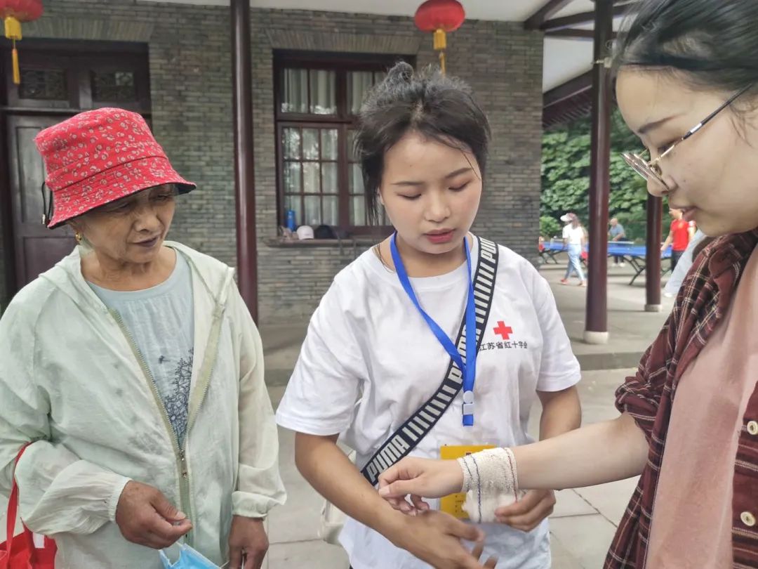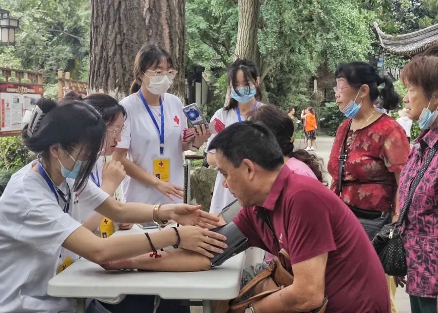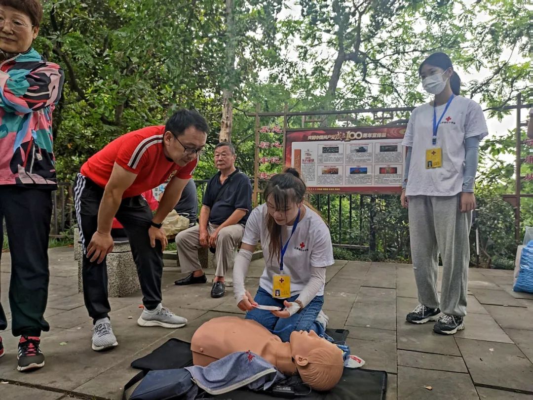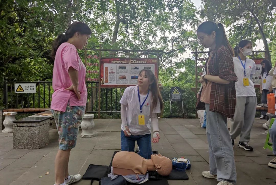 “因爱聚集,为爱付出”,2022年7月3日,镇江市高等专科学校卫生护理学院的红十字志愿者们走进伯先公园开展了“守护生命,为爱前行”主题之景区急救赋能培训活动。活动中,志愿者为当地市民们进行义诊,并围绕外伤包扎、CPR心肺复苏等科目在现场以讲解和实操展演的方式给景区工作人员和市民们上了一堂生动的急救培训课。本次培训活动让市民们了解和获得了更多的急救知识,规范地掌握了许多急救方法。