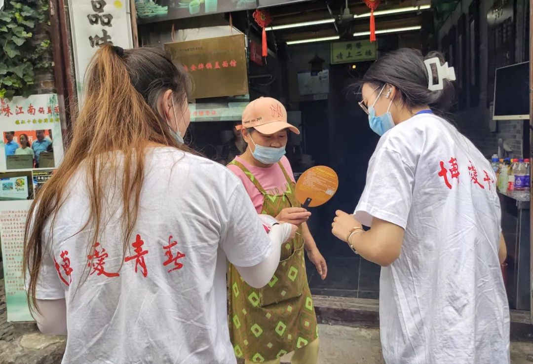 志愿者拿上防暑防虫宣传手册和心肺复苏操作流程扇子在公园内及周边向市民们发放,并向大家讲解健康知识,耐心认真地回答市民们的每一个问题。