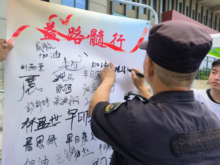 负责现场讲解的志愿者,通过展板和签名墙吸引了许多师生的目光,志愿者们积极向大家介绍,热心解答关于造血干细胞捐献的疑惑,师生纷纷在展板上签名并写下早日康复表达对活动的支持。