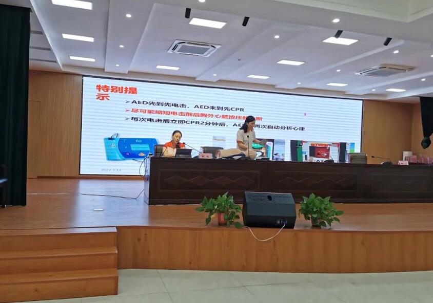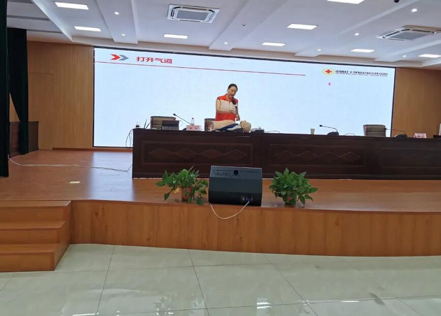培训现场,老师对心肺复苏及AED进行了生动讲解并利用道具进行了场景演练,学员们深刻领会了普及性救护知识,特别对呼吸心跳骤停及气道异物梗阻的应急处置有了更加丰富的认知。