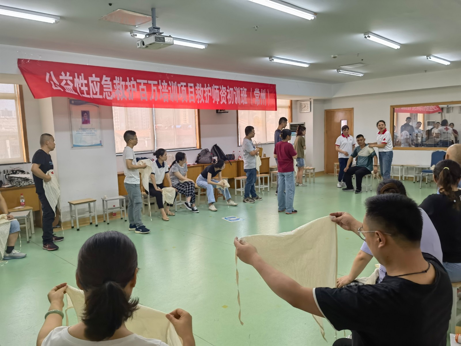 为提高常州市社会群众、学校老师等重点行业应对突发意外伤害和处置应急事件能力,广泛开展应急救护知识和使用技能教学,助力“532”发展战略全民自救互救能力提升,7月10日至14日,为期5天的常州市红十字会公益性应急救护百万培训项目救护师资初训班在常州卫生高等职业技术学校举行。