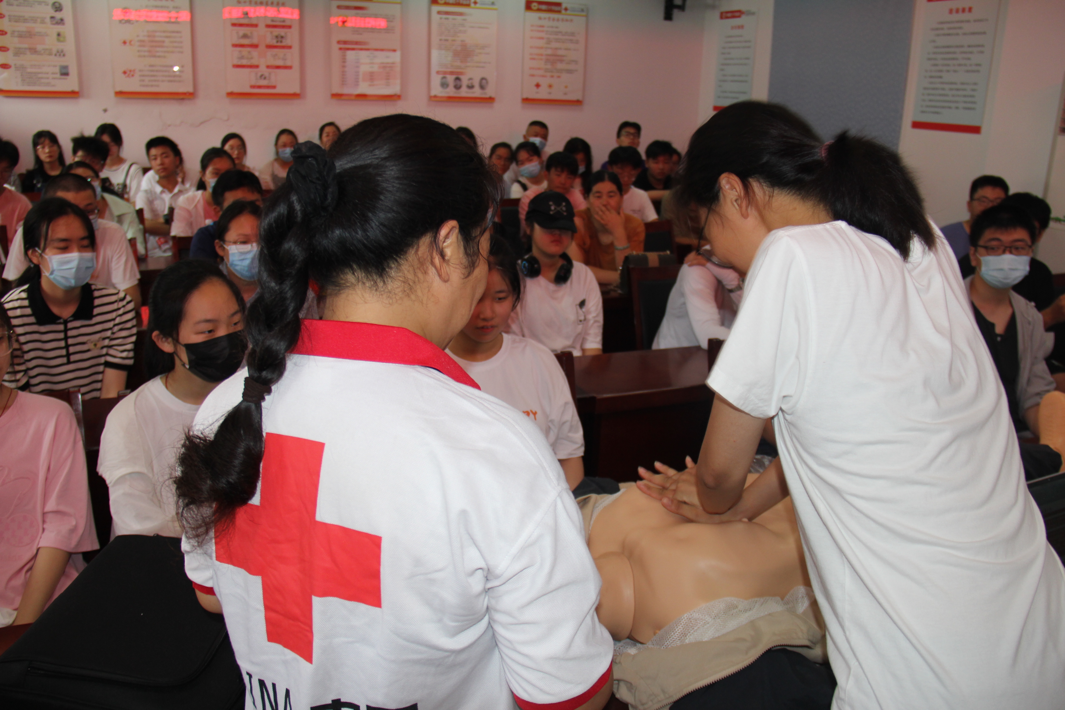 正值暑期,为保障学生的生命安全和身体健康,增强学生紧急避险和自救互救的意识和能力,2022年7月14日上午,射阳县红十字会在一楼理论培训室开展了应急救护培训,50多名大、中学生参加了本次培训。