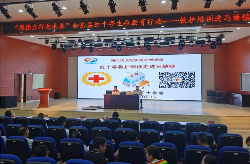 7月14日,如东县红十字会救护师资一行走进马塘镇开展为期2天的“生命教育行动--救护培训”。镇内规上、小微企业负责人和安全管理人员共计370余人参加了培训。