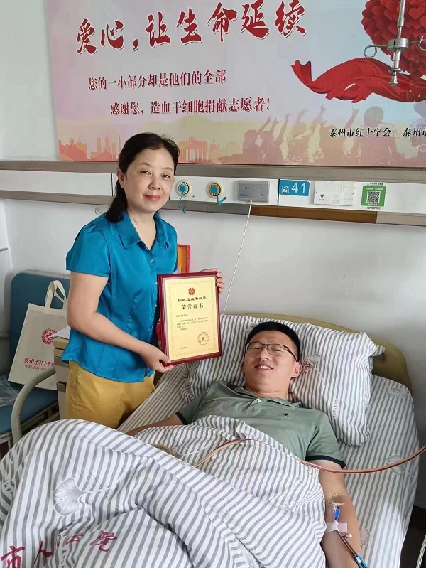 这一次捐献造血干细胞,她也克服了重重困难:母亲刚刚开刀,术后还在恢复,丈夫又在南京工作。“决定让老人在家休息,我们带着孩子一起去泰州。”恰逢孩子放暑假,朱佳佳的丈夫提前向单位请了假,夫妻俩带着孩子,一家四口共同完成这趟“捐献之旅”。