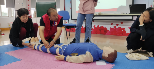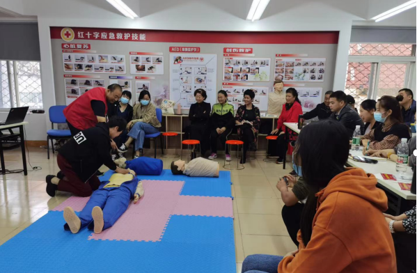 聚焦生命教育,保障救护培训“救”在身边。为提升社区居民生命安全意识,掌握各类现场紧急自救互救技能,太行路社区红十字博爱家园定期邀请区红十字会救护师资开展应急救护培训活动。在多次的培训活动中,通过救护师资现场理论讲授和实操演练的方式,从心肺复苏、体外除颤仪AED的操作使用、气道梗阻自救互救、突发事件的处理和注意事项等方面进行了详细讲解,社区居民们认真学习观摩、主动上手操作、不断开疑解惑、加深救治印象,在师资的悉心指导下掌握了基本的应急救护知识和正确的技能操作。太行路社区红十字博爱家园将参与培训的居民纳入“红十字博爱家园应急救护志愿服务队”,保障社区突发情况下第一时间对当事群众进行判断和处置,形成“救”在社区、“救”在邻里、“救”在身边的良好保障。