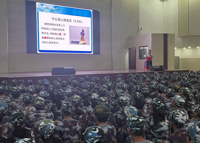 为丰富学生军训内容,积极打造和谐平安校园,广泛弘扬“人道、博爱、奉献”的红十字精神,树立“人人学急救”的理念,丹阳市红十字应急救护培训作为新生军训必学的一门“救在身边”公益培训课程。