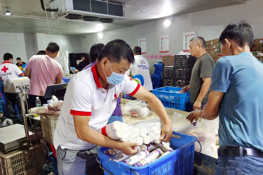 因为经手的大部分都是冰冻保鲜食品,到晚上才发现,每个志愿者的双手都被冻得煞白,当终于把所有封控区的保供物资分装完成时,队员们才觉得腰酸背痛,赶紧坐下休息一会。尽管大家非常疲惫,但看到经过自己双手一袋袋分装好的生活保障物资装上车运往封控区送到隔离市民手中,心中都非常开心,所有的付出都是值得的。