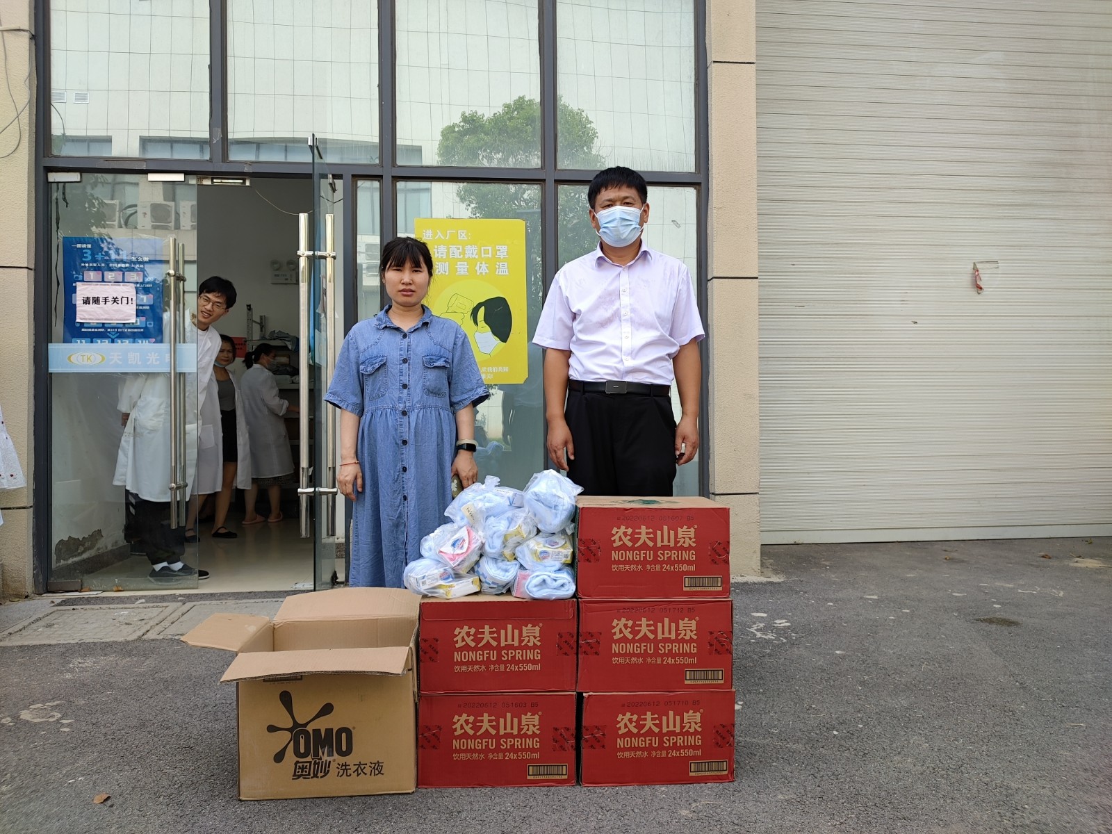 7月19日下午,宿城区红十字会到挂钩企业江苏天凯光电有限公司开展“送清凉、送政策、送安全”主题活动,为忙碌在建筑工地一线的农民工朋友送上矿泉水、毛巾、肥皂等防暑降温等用品。