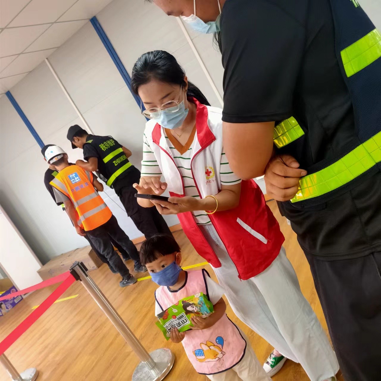 现场,红十字志愿者们提醒群众间隔一米距离、戴好口罩做好自身防护,同时引导大家有序进入核酸检测区域,扫门铃码、行程码,并登记核酸采样相关信息。