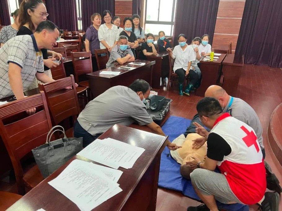实践环节中,在培训老师的指导下,学员们开展了伤口包扎、心肺复苏等急救技能的实操练习,并成功通过考核测试。互动环节中,参训的教师们针对日常工作、生活中遇到的疑难点问题进行现场提问,培训老师一一作出了解答。