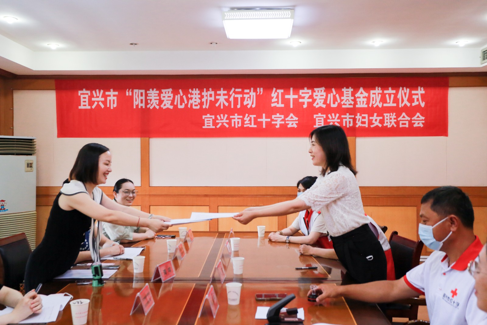 宜兴市“阳羡爱心港护未行动”红十字爱心基金由宜兴市妇女联合会组织发动无锡江南电缆有限公司、江苏恒兴新材料科技股份有限公司两家爱心企业向宜兴市红十字会捐赠10万元成为启动资金,在宜兴市红十字会备灾救助基金下设立专项基金项目,用于帮助全市处于困境中亟需关爱帮扶的妇女儿童。