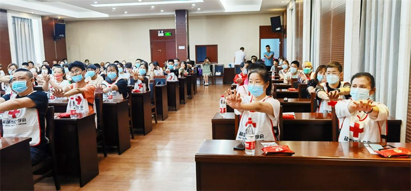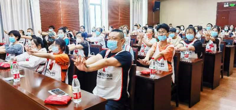 7月17日上午,市红十字会为无偿献血志愿服务队开展暑期第二批应急救护培训班,60名志愿者接受培训,其中有很多家庭组团参加。