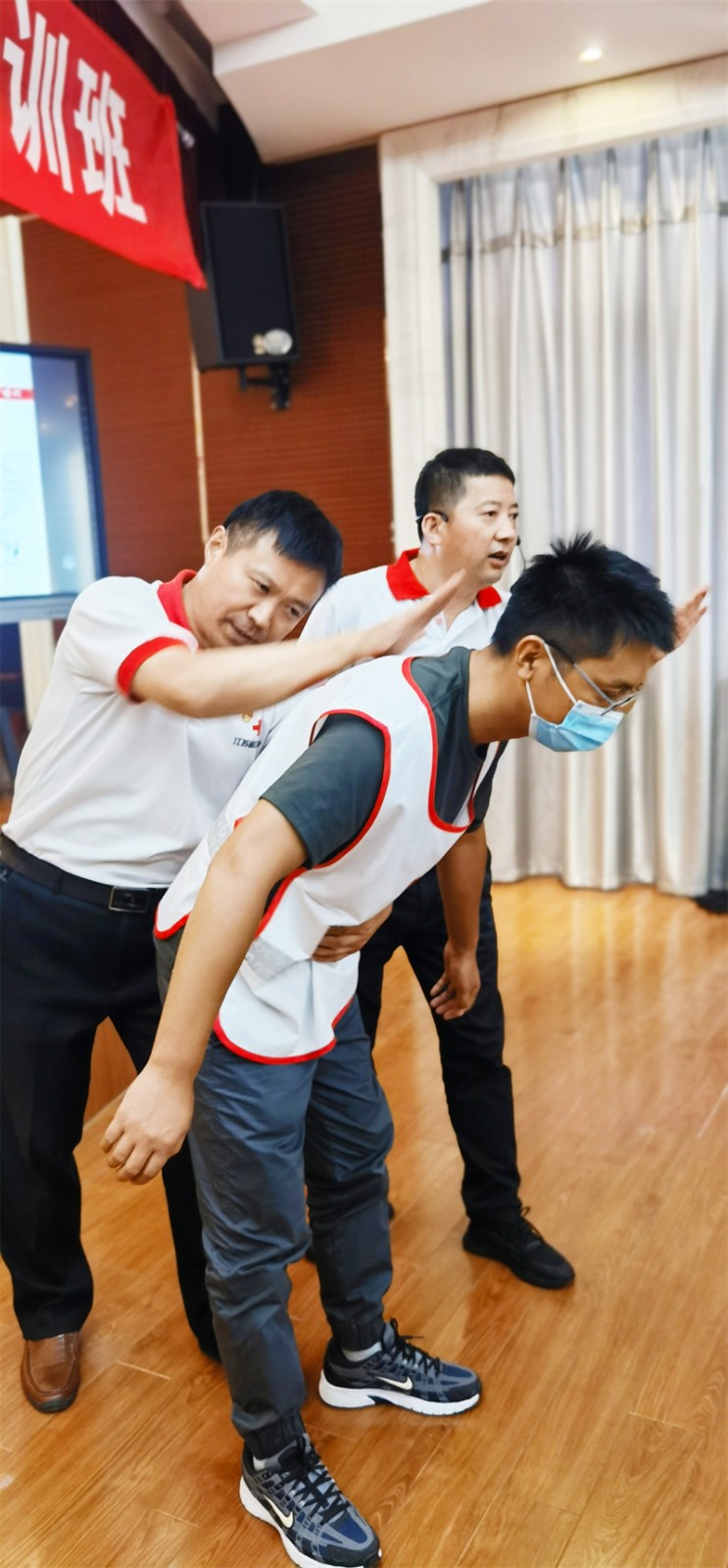针对夏季溺水事故高发,救护培训师韦军对预防溺水的措施、溺水时的自救方法、发现有人溺水时的救护方法、岸上急救溺水者等做了详细的说明和演示。